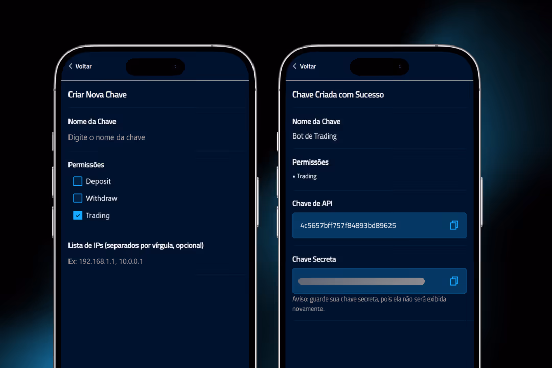 Agora, você pode gerar chaves de API diretamente pela plataforma Coinext, permitindo que ferramentas externas se conectem à sua conta de forma segura.