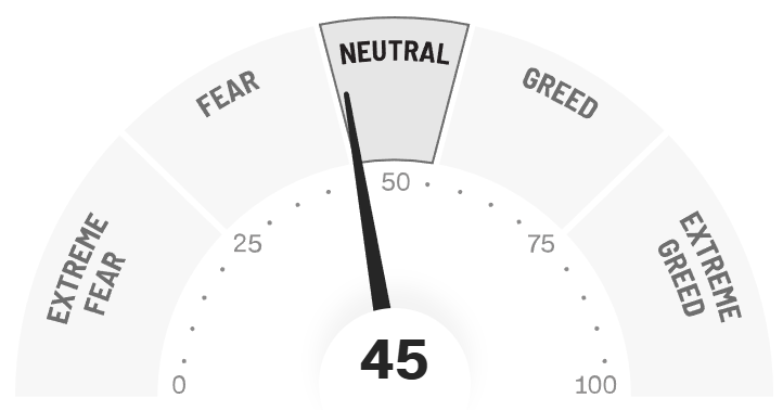 Apesar das novas máximas no S&P 500, o sentimento do mercado segue pressionado. O prolongamento do shutdown nos EUA mantém o clima de cautela, e o índice de Medo e Ganância avançou modestamente para 45 pontos, ainda próximo da zona de medo.