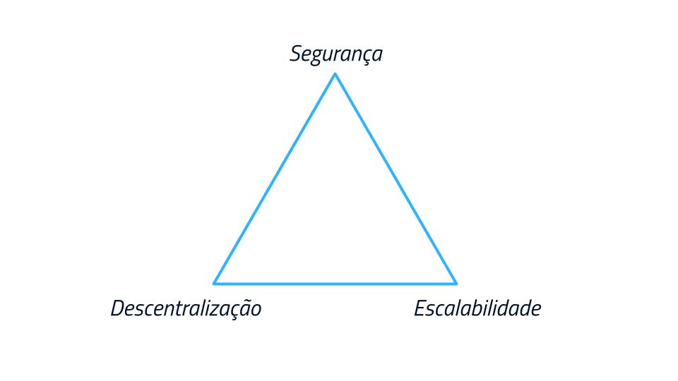 Isso porque, segundo o conceito de Trilema Blockchain, quanto mais segura e descentralizada, menos escalável tende a ser uma rede Blockchain. Esse conceito se apoia em três aspectos fundamentais que uma rede deveria apresentar: