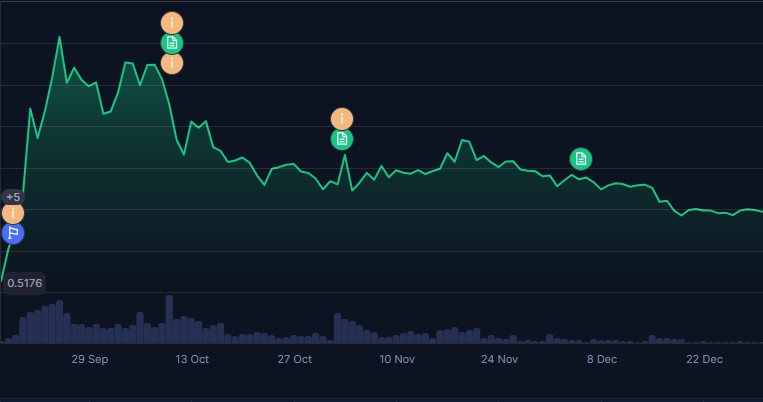 Durante novembro e dezembro, o preço do ASTER entrou em uma fase de estabilização, com oscilações mais contidas e menor volume negociado, o que indica uma perda momentânea de interesse especulativo e ausência de novos gatilhos de valorização no curto prazo.