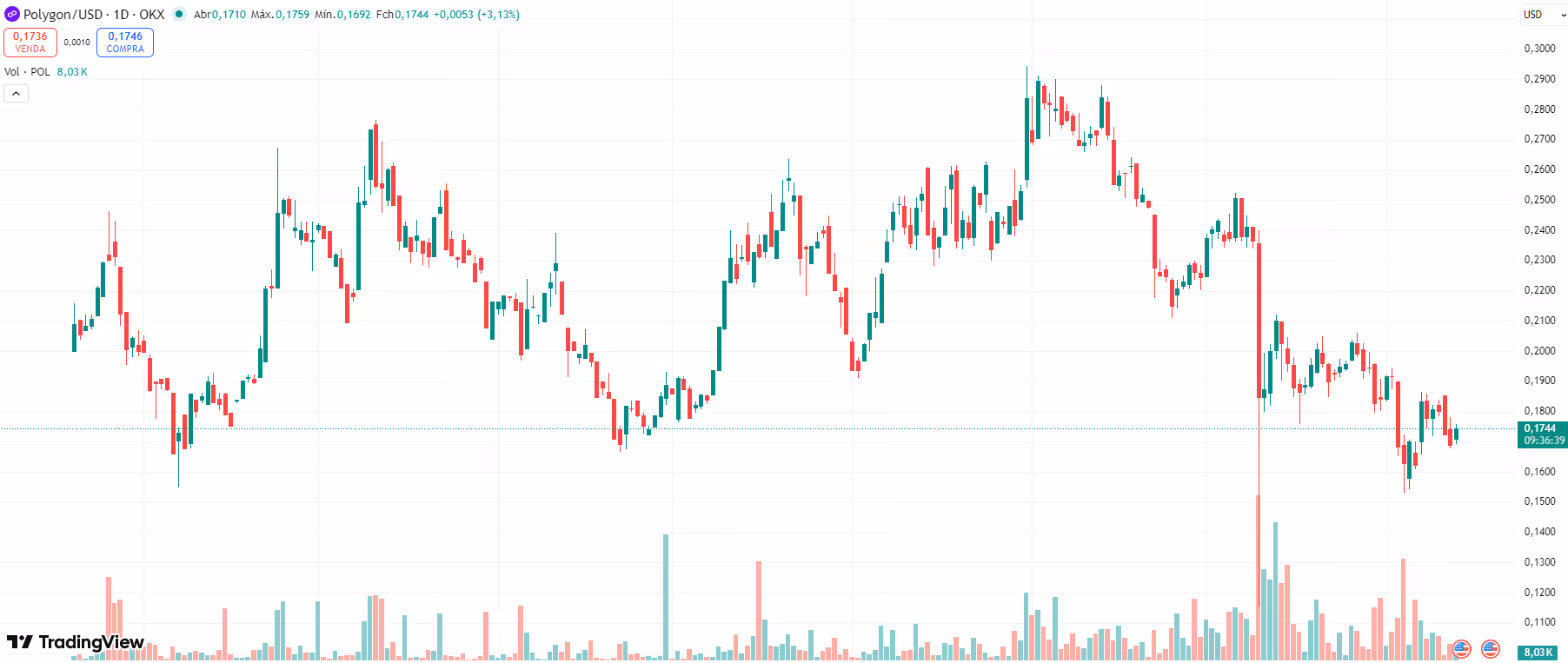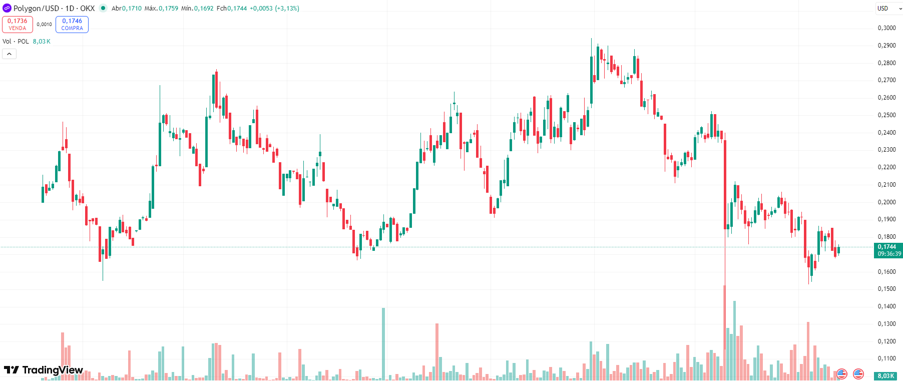 Embora alguns períodos tenham registrado altas significativas, impulsionados por notícias pontuais sobre a expansão do ecossistema da Polygon ou atualizações de infraestrutura, a tendência predominante do ano foi de enfraquecimento.