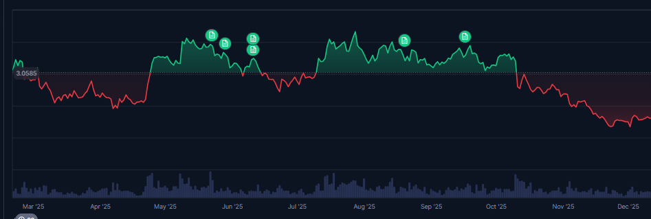 Somando tudo: o gráfico sugere que o meio de 2025 precificou crescimento e narrativa, enquanto o fim do ano devolveu parte do movimento em uma correção mais persistente. Para quem analisa SUI, 2025 fica marcado como um ano em que a Sui tentou “provar” escala e confiabilidade com upgrades, ao mesmo tempo em que ampliou pontes institucionais — fatores que podem ter sustentado o rali e, depois, não impediram a típica realização do mercado no 4º trimestre.