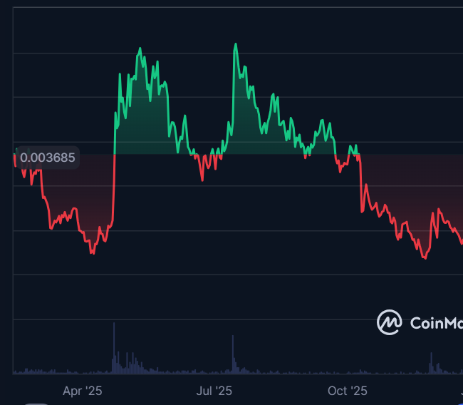 Durante o segundo semestre de 2025, o token entrou em um período de oscilação e correção. O mercado demonstrou indecisão, e o preço começou a se acomodar, possivelmente refletindo a realização de lucros por parte dos investidores. Já no último trimestre do ano, especialmente após setembro, o TURBO passou a registrar quedas constantes, retornando a valores próximos de US$0,0035. Esse movimento de retração pode ter sido causado pela perda de interesse do mercado, ausência de novas atualizações relevantes ou impactos colaterais de decisões anteriores, como a queima excessiva de tokens sem sustentabilidade de longo prazo.
